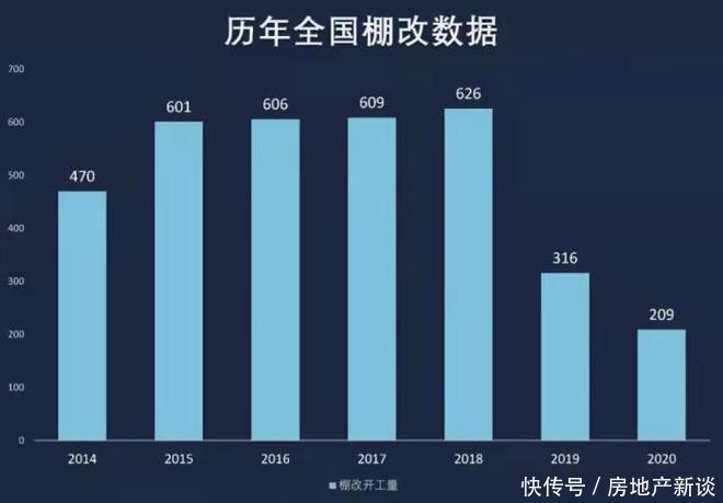 随着由于近些年持续不断拆迁,我国大部分棚户区和存在质量问题的老房子都快被拆完了,现在很多老小区根本就没有质量问题,仅仅只是有一些破旧而已。如果将这些老小区都拆迁掉,会造成大量社会资源的浪费。另外,由于棚改货币化安置政策的影响,拆迁会导致大量资金流入楼市,也会在一定程度上推动房价的上涨。特别是对于棚改项目占比比较大的三四线城市,这些城市的房价受棚改拆迁的影响非常大。因此在2015年棚改货币化安置政策实施之后,大部分三四线城市的房价就迎来了大涨行情。因此可以看出,不管是为了调控房价还是为了不浪费社会资源,从2019年开始国家就已经开始逐步减少棚改拆迁项目了。根据统计数据显示,2018年全国棚改项目开工总数量为626万套,而2019年降至316万套,紧接着2020年又降至209万套。